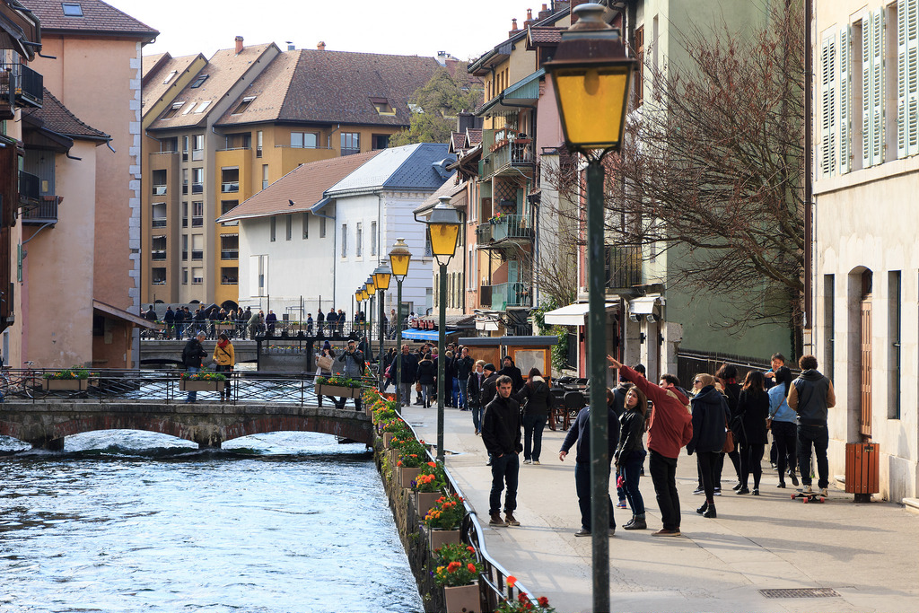 Đi bộ 500m từ trạm xe lửa sẽ tới khu phố cổ, toạ lạc ngay trên trên hồ Annecy. Dọc 2 bên là những dãy nhà thời trung cổ, tạo cảm giác như một Venice thu nhỏ. Điểm khác biệt là có núi và bờ hồ rộng lớn ở thượng nguồn, được hình thành cách đây hơn 15 ngàn năm trước và cũng là nước dùng cho sinh hoạt thường ngày. Annecy thoáng và mát, nước hồ trong xanh chảy ra từ núi băng, những lúc trời nắng và trong, du khách có thể nhìn thấy được cả đáy.