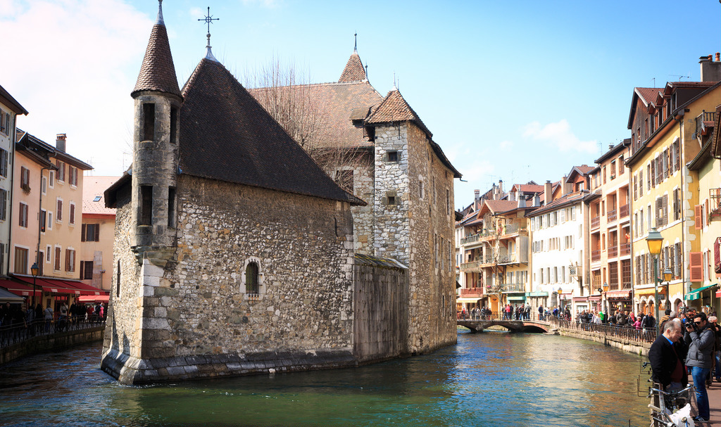 Thị trấn nhỏ nhưng rất dễ thương, mọi du khách đến đây đều cố gắng tham quan thật chậm. Như chỉ dẫn của cuốn sách du lịch, tôi bắt đầu tham quan Annecy từ biểu tượng của thị trấn – tòa nhà cổ hình tam giác (ảnh trên) hơn 800 năm tuổi nằm giữa dòng kênh trung tâm. Đây từng là một nhà tù, rồi trở thành nhà thờ và hiện nay là quán rượu. Giá ăn uống trong ngôi nhà này tất nhiên là đắt nhất Annecy vì giá trị lịch sử của nó. Ngoài những người đi bộ, trên những con đường lát gạch miếng nhỏ kiểu Pháp, phương tiện di chuyển chủ yếu là xe đạp và xe gắn máy. Nhiều người cũng gọi Annecy là Venice của nước Pháp bởi nơi đây có dãy phố cổ nằm dọc theo bờ kênh, những cây cầu xinh xắn như trong cổ tích. Những quán cà phê và nhà hàng cũng treo đầy các lẵng hoa rực rỡ đủ màu.