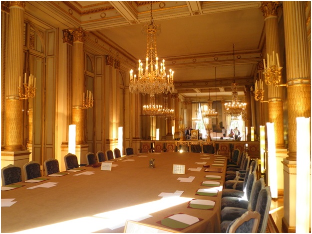 Vào sáng thứ 4 hàng tuần, Nội các Chính phủ họp phiên thường lệ ở "Salon Murat", Phòng Murat, căn phòng lấy theo tên của Joachim-Napoléon Murat, em rể của Napoléon Bonaparte và là một trong những nguyên soái nổi bật nhất trong các chiến dịch của vị hoàng đế này. Trong căn phòng này tổng thống sẽ ngồi chính giữa và đối diện với thủ tướng, xung quanh là cácbộ trưởng. Các cuộc họp của Hội đồng Quốc phòng cũng được tổ chức tại đây.