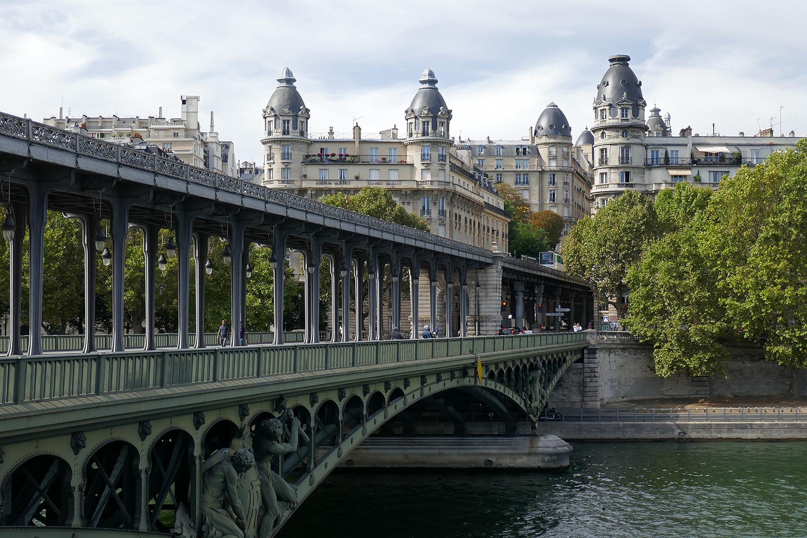 Xây dựng vào năm 1905, đây là một trong hai cây cầu trên tổng số 37 cầu bắc qua sông Seine có đường ray tàu chạy qua. Cầu có hai tầng, tầng dưới phục vụ người đi bộ và ô tô, tầng trên dành cho đường ray tàu điện. Phần cầu cạn phía trên được đỡ bởi một hàng cột kim loại và một vòm gạch trung tâm, nơi đặt 4 bức tượng bằng đá: bức “La science et le travail”của Jules Coutan, bức “L’electricité et le Commerce” của Jean-Antoine Injalbert, tầng dưới là bức “La France renaissante” của Wederkinch. Từ cây cầu này có thể xuống thăm bản sao tượng nữ thần Tự do. Người ta đặt dọc cầu rất nhiều bia tưởng niệm, phần lớn là dành cho các binh lính Pháp đã thiệt mạng ở châu Phi trong thời thế chiến thứ 2.