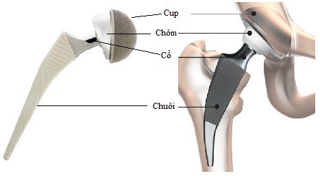 Cup gắn vào ổ cối được làm bằng kim loại. Lót mặt trong Cup là hợp chất cao phân tử polyethylene hoặc gốm.