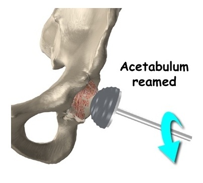 Bước 2: Phần sụn khớp bị tổn thương của hõm khớp sẽ được làm sạch. Hõm khớp sẽ được chuẩn bị để phù hợp với kích thước của hõm khớp nhân tạo được lựa chọn.