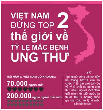 Theo thống kê của Dự án phòng chống ung thư Quốc gia, mỗi năm ở Việt Nam có khoảng 70.000 người chết và hơn 200.000 nghìn người mắc mới. Đó là con số đáng báo động về tình hình mắc bệnh ung thư ở nước ta. Theo dự đoán của các chuyên gia, con số này sẽ không dừng lại ở đó mà còn gia tăng trong những năm tiếp theo.