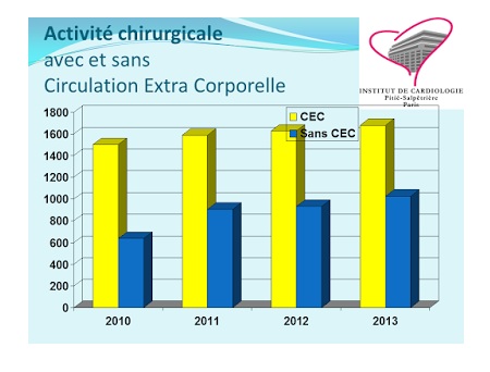Đối với dụng cụ hỗ trợ thất trái, năm 2013, Trung tâm đã thực hiện 9 trường hợp tim nhân tạo toàn bộ (Coeur artificiel total – Cardiowest), 49 trường hợp hỗ trợ thất trái (18 Heartmate II, 5 Jarvik và 17 Heartware).