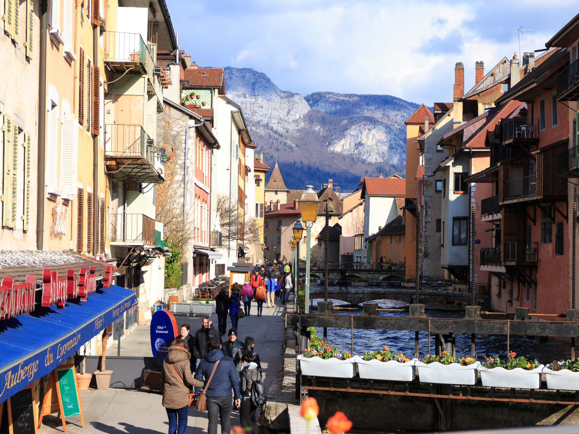 Đi bộ 500m từ trạm xe lửa sẽ tới khu phố cổ, toạ lạc ngay trên trên hồ Annecy. Dọc 2 bên là những dãy nhà thời trung cổ, tạo cảm giác như một Venice thu nhỏ. Điểm khác biệt là có núi và bờ hồ rộng lớn ở thượng nguồn, được hình thành cách đây hơn 15 ngàn năm trước và cũng là nước dùng cho sinh hoạt thường ngày. Annecy thoáng và mát, nước hồ trong xanh chảy ra từ núi băng, những lúc trời nắng và trong, du khách có thể nhìn thấy được cả đáy.