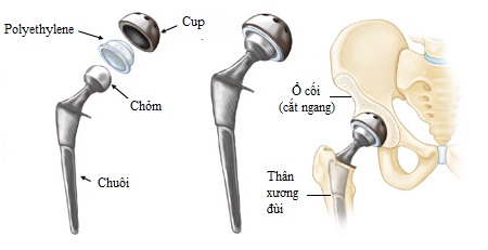 Cup gắn vào ổ cối được làm bằng kim loại. Lót mặt trong Cup là hợp chất cao phân tử polyethylene hoặc gốm.